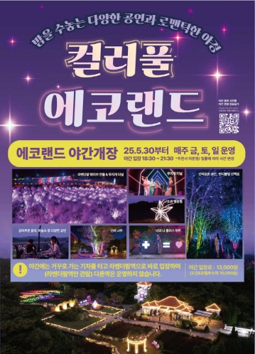 자연과 예술이 어우러지는 ‘컬러풀 에코랜드’는 야간 콘텐츠 속에서 에코랜드의 여름밤을 더욱 다채롭게 구성한다. 현장에서는 야간 전용 포토존과 SNS 인증 이벤트도 마련돼 있어 다양한 즐거움을 선사한다.