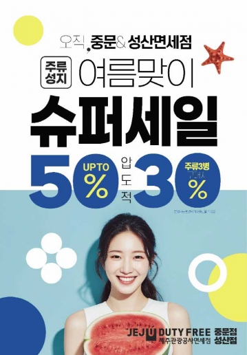 제주관광공사가 본격적인 여름 관광 성수기를 맞아 도내 면세점 이용 고객을 위한 대규모 할인 프로모션과 다양한 사회공헌 이벤트를 동시에 선보인다. 제주관광공사(사장 고승철)는 7월과 8월 두 달 동안 중문면세점과 성산면세점에서 ‘슈퍼세일’을 비롯한 특별 혜택을 본격적으로 운영한다고 4일 밝혔다.