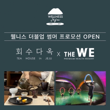 회수다옥과 WE호텔제주의 ‘웰니스 더블업 썸머 프로모션’은 7월 28일부터 8월 31일까지 여름 한정으로 시범 운영한다. 회수다옥의 대표 상품인 ‘제주프리미엄 티 맡김차림’과 WE호텔제주가 투숙객 전용으로 선보이던 ‘위, 힐링위드유’ 프로그램에서 2가지를 선택해 50% 할인된 10만원에 즐길 수 있다. WE호텔제주 숙박 없이 당일 이용도 가능하다.