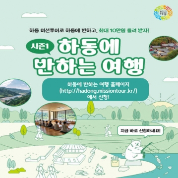 군은 현재 ‘하동에 반하는 여행 시즌1’을 운영 중이며, 다른 지역에 거주하는 소규모 관광객(2인 이상 10인 이하)을 대상으로 여행경비 일부를 지원하고 있다. 지원금은 최대 10만 원까지 모바일 하동사랑상품권으로 지급되며, 관광객은 하동에서 여행을 즐기는 동시에 지역 상권을 직접적으로 지원할 수 있어 일석이조 효과를 거둘 수 있다.