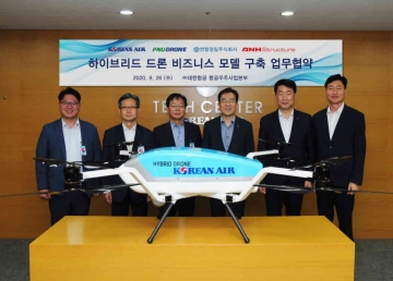 대한항공은 8월 26일 부산 강서구 테크센터에서 이수근 대한항공 부사장, 강범수 피앤유드론 대표이사, 김용수 연합정밀 대표이사, 안현수 에이엔에이치스트럭쳐 대표이사 등이 참석한 가운데 하이브리드 드론 실증 및 운영사업을 위한 업무 협약서를 체결했다.