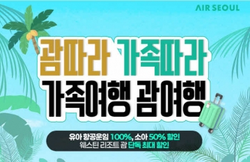 에어서울이 가족 여행객을 위한 특별 프로모션 ‘괌따라 가족따라, 가족여행 괌여행!’ 이벤트를 진행한다. 이번 행사는 2025년 10월 15일부터 11월 14일까지 진행되며, 인천–괌 노선 이용 고객에게 유·소아 운임 최대 50% 할인 혜택을 제공한다.