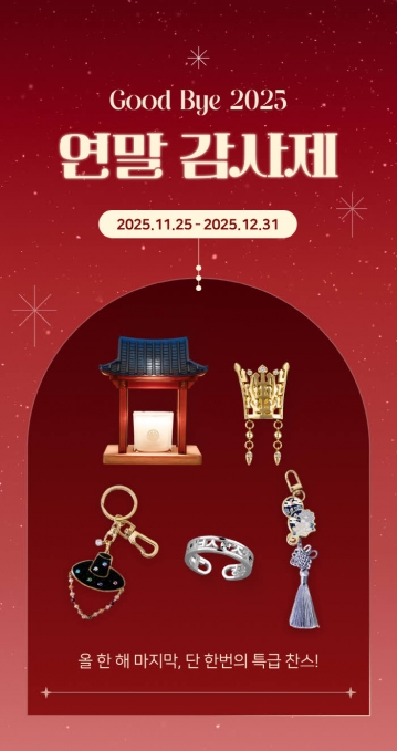 이번 ‘2025 연말 감사제’는 12월 31일까지 한국민속촌 스토어 공식 온라인몰에서 진행되며, 행사 상세 내용은 공식 이벤트 페이지에서 확인할 수 있다.