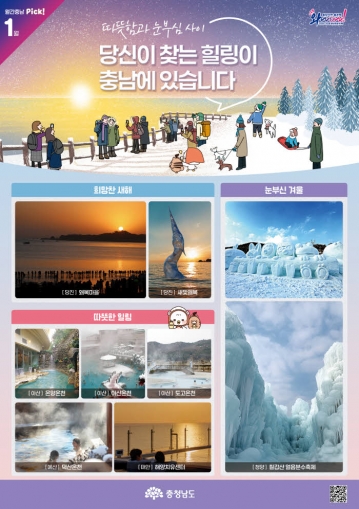 충청남도가 따뜻함과 눈부심 사이를 주제로 새해 첫 월간 충남 여행지를 소개했다. 겨울철 움츠러들기 쉬운 시기에 몸과 마음을 함께 채울 수 있는 쉼의 여행지와 충남을 대표하는 겨울 관광 명소를 중심으로 구성했다.