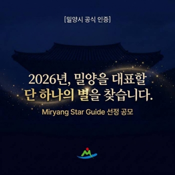 밀양시가 관광객이 신뢰하고 선택할 수 있는 지역 대표 관광 기준을 마련하기 위해 ‘2026년 밀양 관광의 별 Miryang Star Guide’ 공개 모집에 나선다. 밀양시는 21일, 우수 관광업체를 발굴하고 체류 만족도를 높이기 위한 이번 공모를 통해 밀양 관광의 품질을 상징하는 대표 브랜드를 육성하겠다고 밝혔다.