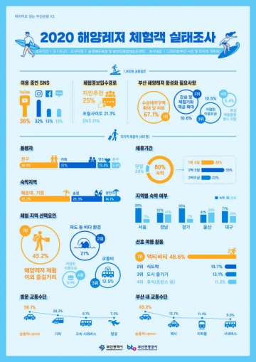 이번 조사는 공사가 해양레저 체험객 실태 분석 및 마케팅 활성화 방안을 모색하기 위해 지난 8월 한 달간 송정해수욕장과 광안리해양레포츠센터에서 해양레저 체험객 1천 명을 대상으로 현장 설문조사로 진행됐다.