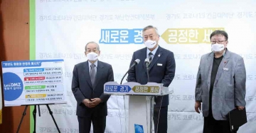 임동원 ‘렛츠 디엠지 조직위원장(전 통일부장관)과 이재강 평화부지사, 강헌 집행위원장(경기문화재단 대표)은 16일 경기도청에서 공동브리핑을 열고 ‘렛츠 디엠지(Let’s DMZ)’ 행사계획을 발표했다.