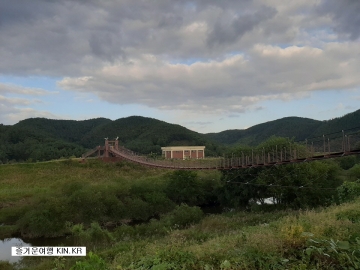 가을바람 맞으며 탐방로를 거닐다 보면 산밖벌 끝머리 제방 쪽 토평천 하류에 설치된 길이 98.8m, 보행폭 2m의 우포출렁다리(창녕군 이방면 옥천리 756번지)가 나온다.