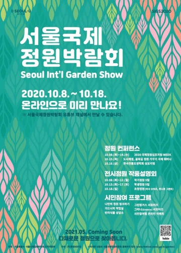 온라인으로 미리 만나는 ‘2020 서울국제정원박람회’는 공식 유튜브 채널(https://www.youtube.com/c/Seoulgardenshow)을 통해 공유되며 보다 자세한 사항은 2020 서울국제정원박람회 홈페이지(https://festival.seoul.go.kr/garden)를 통해 확인할 수 있다.