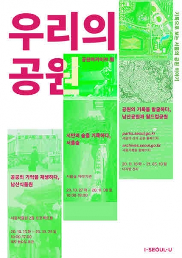 서울시는 2020년 시정협치 ‘공원아카이브 구축 사업’에서 수집된 공공기록물과 시민의 기록을 소재로 서울의 공원의 이야기를 공유하는「우리의 공원」展을 개최한다.
