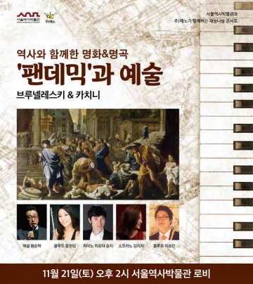 서울역사박물관(관장 배현숙)은「역사로 풀어보는 음악이야기」라는 테마로 2020년 재능나눔콘서트를 개최하며 ‘팬데믹과 예술’을 주제로 11월 21일(토) 오후 2시 서울역사박물관 1층 로비에서 연주회를 선보인다.
