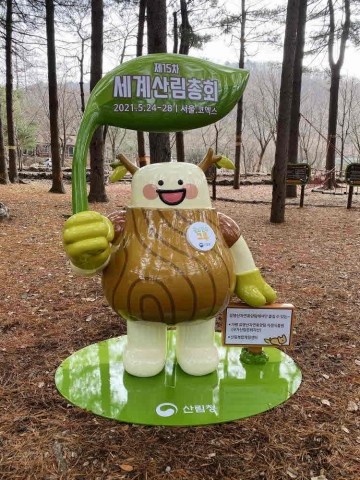 사진 무대는 코로나19 확산 상황에 따라 비대면 관광지로 주목받는 유명산·아세안 자연휴양림 두 곳에 산림청 상징 '그루' 캐릭터로 세계산림총회와 자연휴양림의 정보를 알리는 모습으로 구현했다.