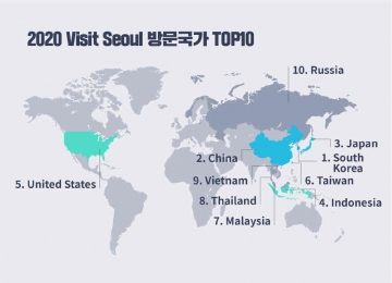2020년 서울을 특별히 사랑한 국가 TOP 10은 어디일까. 전 언어권을 통틀어 서울관광 공식 웹사이트 visitseoul.net 접속 국가 TOP 10은 <한국>, <중국>, <일본>, <인도네시아>, <미국>, <대만>, <말레이시아>, <태국>, <베트남>, <러시아> 순이다. 우리나라를 제외해도 아시아의 비율이 압도적인데 한국과 지역적으로도 가깝지만, 한류 콘텐츠의 주 소비층인 만큼 한류의 지속적인 인기에 힘입어 ‘서울 관광’까지 관심이 이어진 것으로 판단된다.