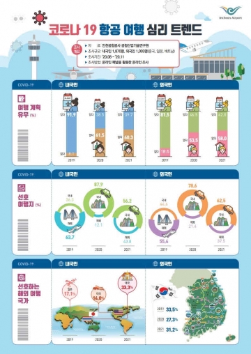 인천국제공항공사(사장직무대행 임남수)는 내‧외국인 2,873명을 대상으로 진행한 '코로나19 항공여행 심리 트렌드 설문조사'결과를 발표했다고 밝혔다.