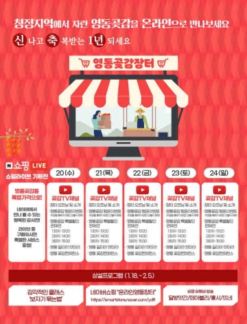 구정연휴 등 곶감 판매를 극대화할 수 있는 기간을 고려하여 1월 18일부터 2월 5일까지 총19일 간 온라인 영동곶감장터가 운영된다.
