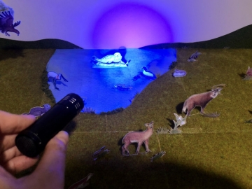 가지고 싶을 만큼 앙증맞고 완성도 높게 제작된 팝업 북 스타일의 ‘머지않은 우리’는 멸종위기종을 한데 모아 놓은 강현아 작가의 또 다른 설치 작품이다. UV 랜턴을 통해 작품 주변의 기둥을 비춰보면 희귀종, 멸종 위기종 등으로 분류된 DMZ 동식물들의 리스트를 발견할 수 있어 재미와 교육적 효과를 동시에 느낄 수 있다.