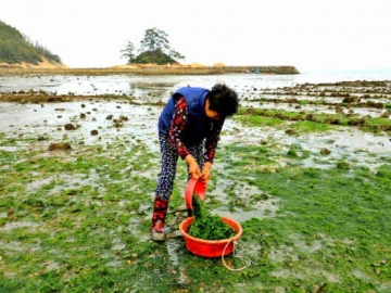 장흥군 용산면에 위치한 소등섬 앞에서 파래 수확이 한창이다.
