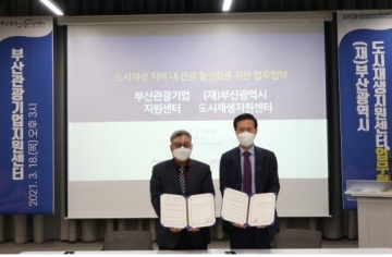 부산관광기업지원센터(센터장 이재상)는 지난 18일 (재)부산광역시도시재생지원센터(원장 변강훈)와 부산 영도구 도시재생 지역 내 관광 활성화를 위한 업무협약을 체결했다.