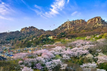 전남 4월 꽃길 여행지- 목포 유달산과 해상케이블카 풍경이 있는 봄(목포시청 제공)