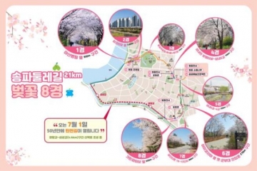 송파구(구청장 박성수)가 <송파둘레길 벚꽃 8경>을 선정해 그 아름다움을 홍보하고 있다. 도심속 자연하천을 끼고 있는 송파둘레길이 석촌호수에 버금가는 서울 최대 벚꽃명소 도보관광코스로 떠오를 전망이다.