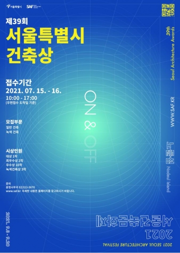첫째, 건축 분야 최고 권위의 상인 ‘제39회 서울특별시 건축상’을 20일(목)~7월 16일(금)까지 공모한다. 서울시는 건축의 공공적, 예술적, 기술적 가치를 구현해 시민 삶의 질을 향상시킨 서울 소재 우수한 건축물을 매년 발굴‧시상해오고 있다.