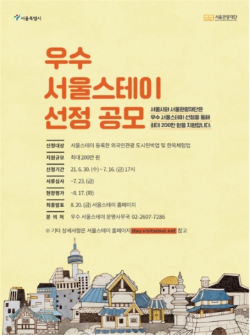 서울시와 서울관광재단은 서울스테이에 등록된 숙소를 대상으로 올해부터 ‘우수 서울스테이’를 선정하고, 최대 200만원을 지원한다고 밝혔다. 서울시는 코로나19 장기화로 위기에 놓인 관광숙박 업계를 지원하고, 코로나 시대에 안심할 수 있는 서울 관광숙박 환경을 제공한다는 계획이다.