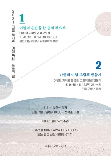 양주시 고읍도서관은 코로나19로 마음처럼 여행을 떠나기 쉽지 않은 요즘 김성은 작가와 자신만의 여행책을 제작해보는 여행 특화프로그램을 운영한다.