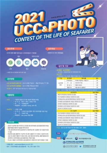 2021 UCC & Photo Contest of ‘The Life of Seafarer’ 공모전은 전국해운노동조합협의회가 주최하고 해양수산부, 부산지방해양수산청, 전국해상선원노동조합연맹, 한국해기사협회, 한국해양수산연수원이 후원하며, 해상에서 활동하는 근로자의 사기를 증진시키고 국민의 해상 생활 및 근로에 대한 의식 전환과 직업군으로써의 청년의 관심을 유도하고자 기획됐다.