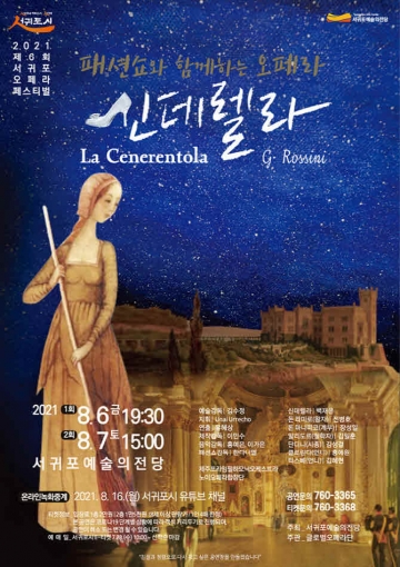올해 전막공연 오페라 신데렐라는 서귀포예술의전당 대극장에서는 우나이 우레초 지휘, 유혜상 연출로 8월 6일(금) 오후 7시30분, 8월 7일(토) 오후 3시에 개최되며 대중이 익히 아는 동화적 요소를 등장 시켜 인물 각각의 캐릭터를 살린 이태리식 코믹오페라 정수를 보여줄 예정이다.