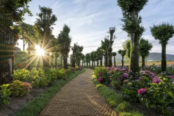 은행나무 주위를 아름답게 감싸고 있는 수국도 시선을 끈다. 초여름까지는 다채로운 빛깔의 원예수국(꽃수국)이 활짝 피었다가, 근래 들어서는 우윳빛 목수국이 절정이다. 은행나무 수국길과 함께 서삼장미터널 인근에서도 수국으로 장식된 아름다운 조경을 감상할 수 있다.