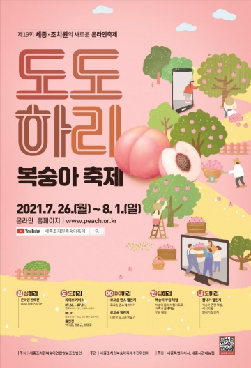 세종특별자치시(시장 이춘희)가 26일부터 8월 1일까지 7일간 ‘도도하리(桃桃夏RE)’를 주제로 제19회 세종조치원복숭아축제를 온라인으로 개최한다.