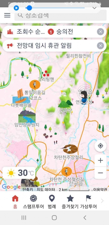 여기에 범례에는 11개의 테마가 마련돼 있어 관광명소, 농촌체험관광, 주변 음식점과 숙박 정보 등을 한눈에 확인할 수 있다. 더보기 기능은 연천군 홈페이지와도 연동하고 있다.