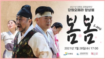 강원문화재단(대표이사 김필국)은 강원도만의 특색 있는 공연을 통해 코로나19로 지친 도민의 마음을 위로하고, 도민들의 문화예술 향유 기회 확대에 앞장서고자 「2021년 강원도 문화공연단 On(溫)tact Live Concert」 ‘창작오페라 봄봄’ 공연을 28일 오후 5시 유튜브로 최초공개한다.
