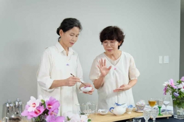 꽃차 체험은 송희자 사)꽃차문화진흥협회장과 일본에서 한국 약선요리 전문가로 활동하는 신카이 미야코 전남도 명예홍보대사가 함께 진행했다.