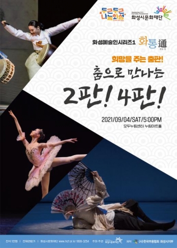 (재)화성시문화재단(대표이사 이종원)은 화성시 관내 예술인 지원 확대를 위해 마련된 ‘화성예술인시리즈1 화통(通)’의 첫 번째 공연으로 ‘희망을 주는 춤판, 춤으로 만나는 2판! 4판!’을 개최한다고 밝혔다.