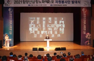 함양산삼항노화엑스포조직위원회(위원장 하병필 경상남도지사 권한대행)는 26일 함양문화예술회관 대공연장에서 2021함양산삼항노화엑스포 성공을 다짐하는 자원봉사자 발대식을 성황리에 개최했다고 밝혔다.