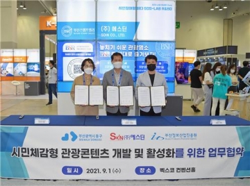 부산 동구(구청장 최형욱)는 지난 1일, BEXCO 제2전시관에서 열린 2021 IT엑스포 부산 행사에서 부산정보산업진흥원, 주식회사 에스딘과 시민체감형 관광콘텐츠 개발 및 활성화를 위한 업무협약을 체결했다고 밝혔다.