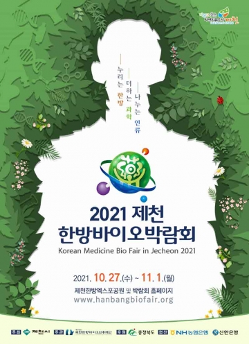 2021제천한방바이오박람회가 오는 10월 27일부터 11월 1일까지 한방엑스포공원 및 한방바이오박람회 홈페이지(www.hanbangbiofaif.org)를 통해 온·오프라인으로 6일간 개최된다.