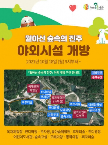 진주시가 어린이집, 유치원 등 야외 체험학습이 많은 가을철을 맞아 18일부터 ‘월아산 숲속의 진주’야외 시설을 개방했다.