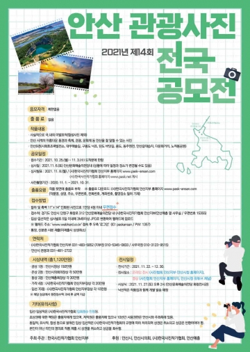 공모전에 대한 자세한 내용은 (사)한국사진작가협회 안산지부에 문의하거나, 안산시 홈페이지 및 안산문화관광 홈페이지에 접속해 공지사항을 확인하면 된다.