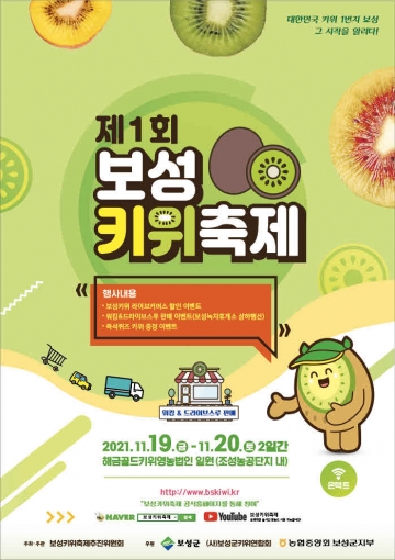 전국 키위 생산량 1위를 자랑하는 보성군은 오는 11월 19일부터 20일까지 대한민국 최초로 보성키위 축제를 개최한다고 밝혔다.