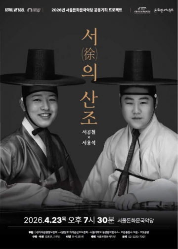오는 4월 23일 열리는 서의 산조 서공철 서용석 공연은 서공철 명인과 서용석 명인의 예술 세계를 잇는 무대다. 젊은 연주자 김용건과 차루빈이 각각 서공철류 가야금산조와 서용석류 대금산조를 연주하며 유파 특유의 음악적 색채를 섬세하게 풀어낸다. 가야금산조는 화려한 여음과 섬세한 감정선 강약의 대비가 돋보이며 대금산조는 힘 있는 음색과 판소리적 시김새로 극적인 흐름을 만들어낸다.