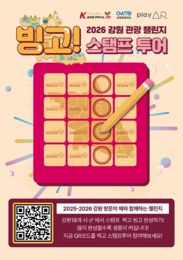 강원관광재단이 ‘2026 강원 방문의 해’를 맞아 도내 전역을 무대로 한 참여형 관광 프로그램 ‘강원 관광 빙고 챌린지’를 4월 9일부터 본격 운영한다. 게임 요소를 접목한 새로운 관광 유도 전략으로 관광객의 이동 동선을 확대하고 체류형 관광을 강화한다는 계획이다.