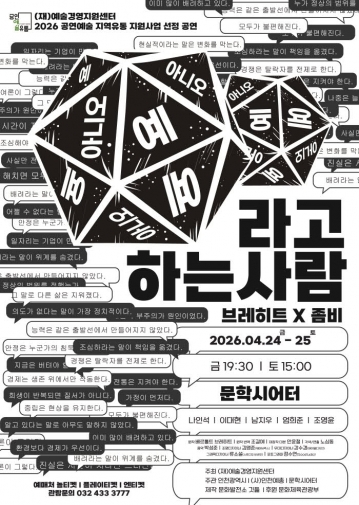 2026년 시즌의 포문을 여는 작품은 4월 공연되는 ‘예라고 하는 사람, 아니오라고 하는 사람’이다. 이 작품은 공동체가 개인을 판단하고 선택하는 과정을 통해 현대 사회의 윤리적 딜레마를 조명하는 브레히트의 학습극으로, 팬데믹 상황의 학교를 배경으로 재해석해 동시대적 메시지를 강화했다.