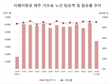 티웨이항공은 2025년 4월 22일 제주-가오슝 노선 첫 취항 이후 1년간 총 206편을 운항하며 약 7만 명의 승객을 수송했다고 밝혔다. 특히 월 평균 90%에 가까운 높은 탑승률을 유지하며 노선 경쟁력을 입증했다.