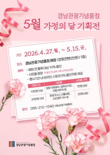 경상남도가 5월 가정의 달을 맞아 지역 관광기념품 소비 촉진과 내수 활성화를 위한 특별 기획전을 마련했다. 경남관광재단(대표이사 배종천)이 운영하는 경남관광기념품점은 4월 27일부터 5월 15일까지 약 3주간 다양한 할인 혜택과 사은 이벤트를 제공하는 프로모션을 진행한다.