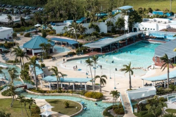 리조나레 괌은 본연의 괌을 만나는 리조트를 콘셉트로 투명한 바다와 괌 서쪽 해안의 석양을 동시에 즐길 수 있는 오션뷰 중심 패밀리 리조트다. 객실 타입에 따라 바다 전망을 선택할 수 있으며 자연과 가까이 머무는 체류형 경험을 강조한다. 특히 괌 최대 규모의 워터파크를 운영하며 대형 파도풀과 유수풀, 세계 최대 규모 만타 슬라이드를 갖춰 가족 단위 여행객에게 높은 만족도를 제공한다.