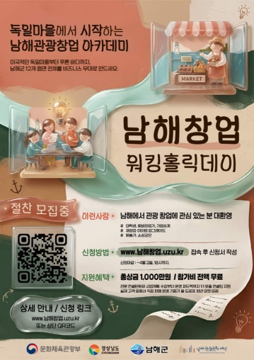 남해 창업 워킹홀릭데이는 지역 관광 자원을 기반으로 한 창업 생태계를 조성하고 청년과 소상공인의 새로운 도전 기회를 확대하는 계기가 될 것으로 전망된다.