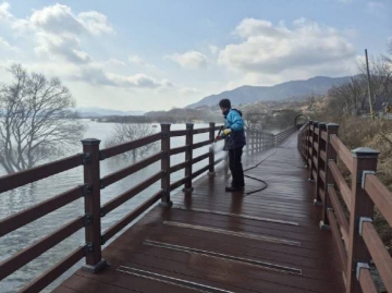 시설 환경 개선 작업도 함께 이뤄졌다. 겨울철 오염으로 얼룩진 예당호 전망대 외벽을 세척하고, 방문객 이용이 많은 느린호수길 데크 구간의 이물질을 제거해 보행 환경을 개선했다. 이와 함께 노후된 벤치와 난간 등 편의시설에 대한 재도색과 보수 작업을 병행해 관광지 미관을 정비하고 안전성도 강화했다.